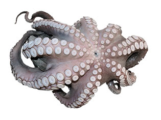 Egyedileg fagyasztott, tisztított 2-3 kg-os, válogatott egész polip. (Octopus vulgaris)Konyhakész termék.